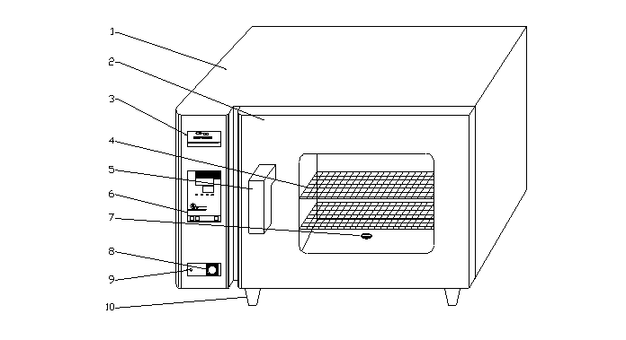1、箱體 2、箱門 3、銘牌 4、擱板 5、手柄 6、溫度控制儀