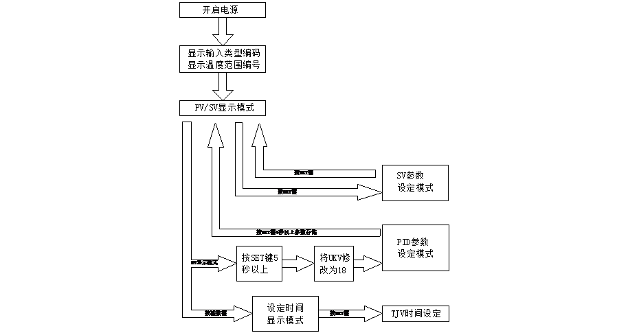 當(dāng)PID參數(shù)設(shè)定模式出現(xiàn)到“Pkv”時(shí),PV顯示“Pkv”,SV顯示“0”(默認(rèn)),此時(shí)按“SET”鍵,SV顯示值閃爍,可按“ ”,“ ”鍵調(diào)整到 您所需要的數(shù)值!謝謝您的配合!
