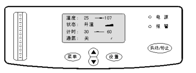 主界面分為溫度、狀態(tài)、計(jì)時(shí)、通氮四欄