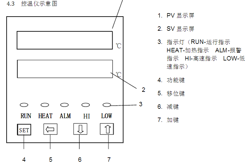 4.6.4.2 當(dāng)工作室內(nèi)的溫度接近控制溫度時(shí),儀表自動(dòng)將循環(huán)風(fēng)機(jī)由高速運(yùn)行調(diào)整為低速運(yùn)行,使工作室的空氣平緩對(duì)流,并有效的延長(zhǎng)循環(huán)風(fēng)機(jī)壽命;