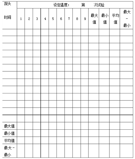 6.1.2可接受標(biāo)準(zhǔn):溫度波動(dòng)≤±1℃ 6.1.3空載熱分布試驗(yàn)記錄