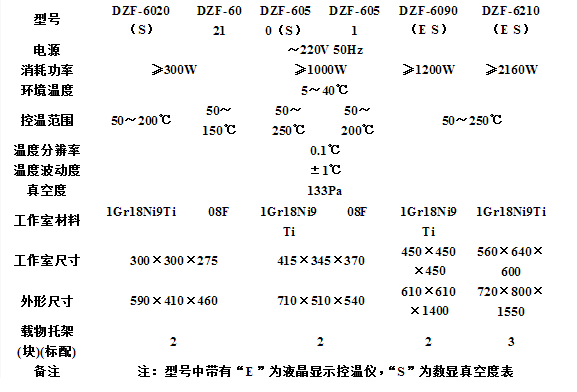 升級型液晶顯示真空干燥箱,除以上功能外還具有液晶顯示溫度,控溫更為精確。數(shù)顯真空度表采用數(shù)字技術(shù)來控制真空度,通過數(shù)顯真空計自動控制真空度,真空計采用電阻硅管壓力傳感器,從而保證穩(wěn)定的壓力值,不受氣流影響,把穩(wěn)定的壓力值傳給真空計LED顯示屏上,控制精度為±1%,改變了手動杠桿控制的歷史。另可配RS-485接口,可連接打印機(jī)和計算機(jī),能記錄溫度參數(shù)的變化狀況(選配)。 技術(shù)參數(shù)