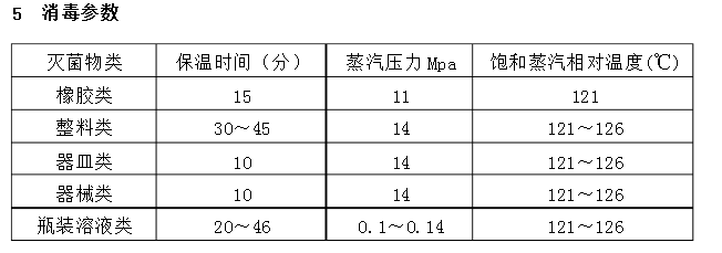 4.5 滅菌 當(dāng)壓力達(dá)到所需的范圍,開(kāi)始計(jì)算滅菌所需時(shí)間,并使之維持恒壓。當(dāng)應(yīng)用0.14兆帕斯卡,124~126℃滅菌時(shí),安全閥能使之維持恒壓。如所需溫度低于上述溫度時(shí),應(yīng)在蒸汽壓力達(dá)到所需范圍時(shí),適當(dāng)調(diào)節(jié)電源開(kāi)關(guān),使在滅菌時(shí)間內(nèi)維持恒壓。