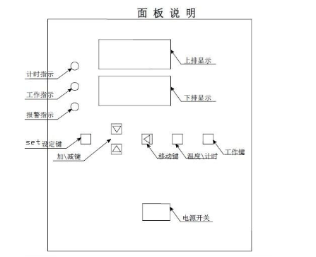 1、開啟電源開關(guān)接通電源,數(shù)顯控制儀顯示。上排顯示測量溫度及計(jì)時(shí)